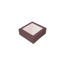 Cajas Pastelería Con Ventana Chocolate 24 x 24 x 12 cm. Cajas de pastelería fabricadas en cartón nano - micro ondulado con 250 g/m². Con ventana OPP fácil de quitar con alta visibilidad. Apertura frontal que permite introducir y retirar los postres con facilidad. Muy resistentes y ligeras. Biodegradables y reciclable. Aguanta temperaturas de -18ºC hasta +70ºC. Dimensiones: 24 x 24 x 12 cm.