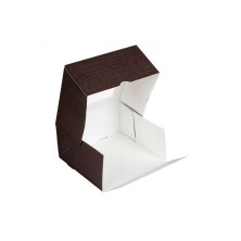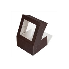 Cajas Pastelería Con Ventana Chocolate 30 x 30 x 8 cm. Cajas de pastelería fabricadas en cartón nano - micro ondulado con 250 g/m². Con ventana OPP fácil de quitar con alta visibilidad. Apertura frontal que permite introducir y retirar los postres con facilidad. Muy resistentes y ligeras. Biodegradables y reciclable. Aguanta temperaturas de -18ºC hasta +70ºC. Dimensiones: 30 x 30 x 8 cm.
