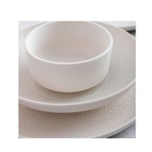 Bol Blanco Fosil 12 x 6 cm. Bol fabricado en porcelana reforzada con alumina, duradera y no porosa. Excelente resistencia al rayado. Texturas sorprendentes con esencia minimalista. Apto para microondas y lavavajillas. Dimensiones: 12 x 6 cm.