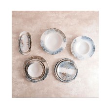 Plato Risotto Polaris Hydrozero 26 cm. Plato hondo fabricado en porcelana vitrificada con acabado profesional de alta resistencia a rayaduras y bordes reforzados. Decorados completos. Es apilable. Apto para microondas y lavavajillas. Dimensiones: 26 cm.